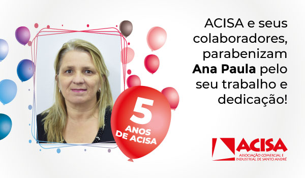Parabéns Ana Paula Gustavo de Oliveira 1 de julho de 2020 acontece na acisa Temos a honra de contar com a sua dedicação e comprometimento durante esses 5 anos. Receba os sinceros agradecimentos de todos da equipe ACISA! Navegação de Post Anterior Post anterior: Parabéns Alessandra!Próximo Próximo post: Parabéns Nilza! Deixe um comentário Cancelar respostaO seu endereço de e-mail não será publicado. Campos obrigatórios são marcados com *Comentário * Nome * E-mail * Site