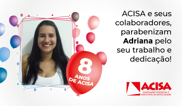 Parabéns Adriana! Gustavo de Oliveira 10 de julho de 2020 acontece na acisa Temos a honra de contar com a sua dedicação e comprometimento durante esses 8 anos. Receba os sinceros agradecimentos de todos da equipe ACISA! Navegação de Post Anterior Post anterior: Parabéns Walace!Próximo Próximo post: Parabéns André! Deixe um comentário Cancelar respostaO seu endereço de e-mail não será publicado. Campos obrigatórios são marcados com *Comentário * Nome * E-mail * Site