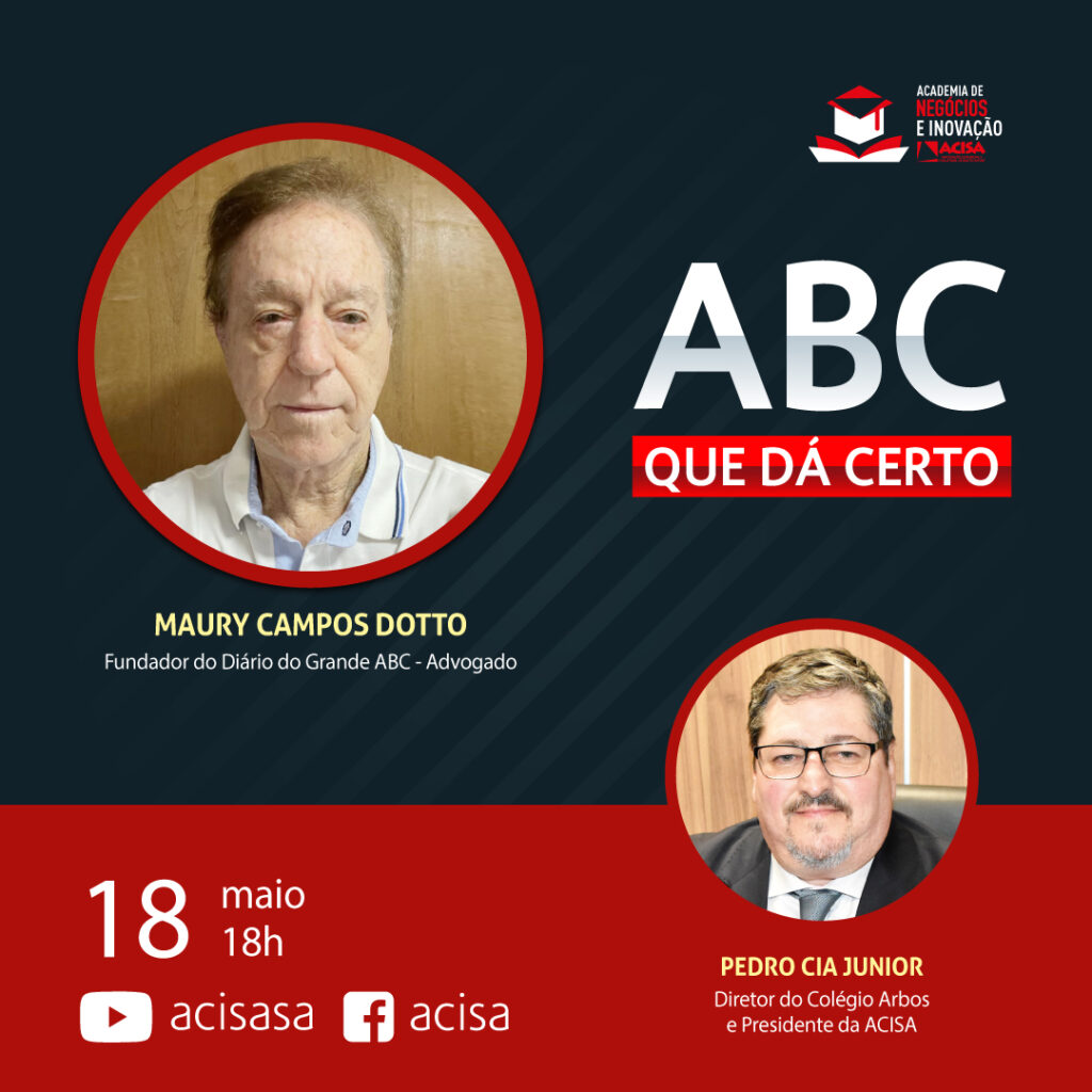 Criado há dois anos como forma de apresentar a trajetória de sucesso de algumas empresas e, ao mesmo tempo, compartilhar experiências e desafios de grandes empreendedores da região, o programa ABC que dá certo, produzido por meio da Academia de Negócios e Inovação ACISA, da Associação Comercial e Industrial de Santo André, já se consolidou como um sucesso. Nas 11 edições já realizadas, foram mais de 2 mil visualizações.
