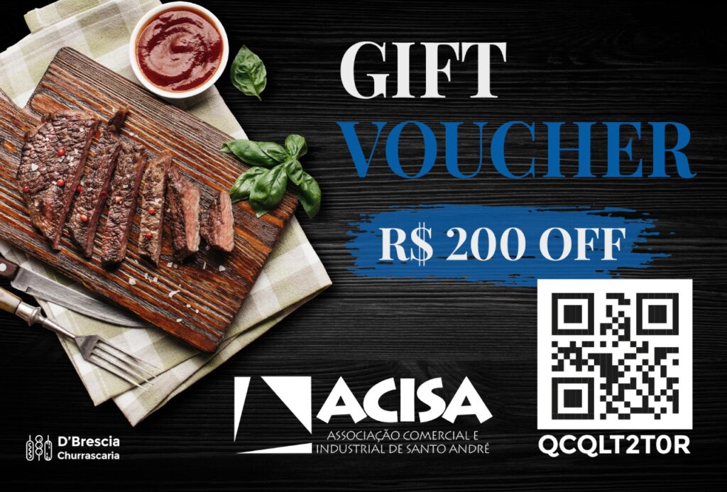 A ACISA vai presenteá-lo com o sorteio de 4 (quatro) vouchers do D’Brescia Churrascaria de R$ 200,00 OFF!!!