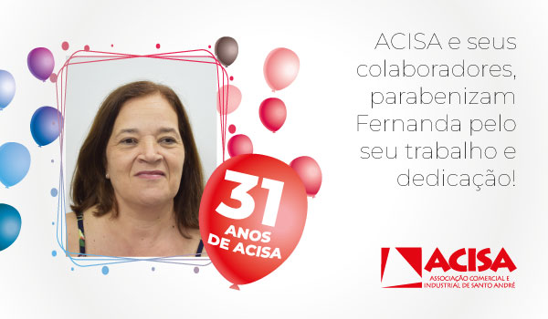 Parabéns Fernanda Gustavo de Oliveira 1 de outubro de 2023 acontece na acisa Temos a honra de contar com a sua dedicação e comprometimento durante esses 31 anos. Receba os sinceros agradecimentos de todos da equipe ACISA! Navegação de Post Anterior Post anterior: Parabéns AndressaPróximo Próximo post: Parabéns aos aniversariantes de Setembro Deixe um comentário Cancelar respostaO seu endereço de e-mail não será publicado. Campos obrigatórios são marcados com *Comentário * Nome * E-mail * Site