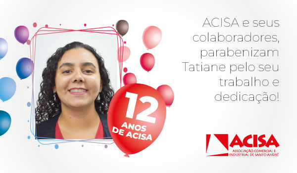 Parabéns Tatiane Gustavo de Oliveira 8 de dezembro de 2023 acontece na acisa Temos a honra de contar com a sua dedicação e comprometimento durante esses 12 anos. Receba os sinceros agradecimentos de todos da equipe ACISA! Navegação de Post Anterior Post anterior: Parabéns LuceliaPróximo Próximo post: Parabéns Andrea Deixe um comentário Cancelar respostaO seu endereço de e-mail não será publicado. Campos obrigatórios são marcados com *Comentário * Nome * E-mail * Site
