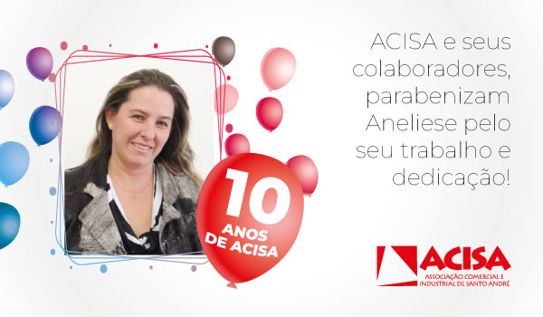 Parabéns Aneliese Gustavo de Oliveira 28 de maio de 2024 acontece na acisa Temos a honra de contar com a sua dedicação e comprometimento durante esses 10 anos. Receba os sinceros agradecimentos de todos da equipe ACISA! Navegação de Post Anterior Post anterior: ACISA é reconhecida com o prestigiado prêmio ACMais 2024 na categoria de Performance Equifax/Boa VistaPróximo Próximo post: Parabéns aos aniversariantes de Maio Deixe um comentário Cancelar respostaO seu endereço de e-mail não será publicado. Campos obrigatórios são marcados com *Comentário * Nome * E-mail * Site