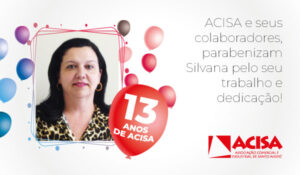 Temos a honra de contar com a sua dedicação e comprometimento durante esses 13 anos. Receba os sinceros agradecimentos de todos da equipe ACISA!