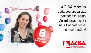 Temos a honra de contar com a sua dedicação e comprometimento durante esses 8 anos. Receba os sinceros agradecimentos de todos da equipe ACISA!