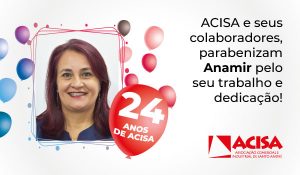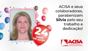 Temos a honra de contar com a sua dedicação e comprometimento durante esses 24 anos. Receba os sinceros agradecimentos de todos da equipe ACISA!