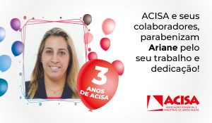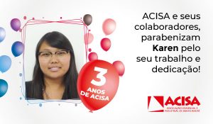 Temos a honra de contar com a sua dedicação e comprometimento durante esses 3 anos. Receba os sinceros agradecimentos de todos da equipe ACISA!