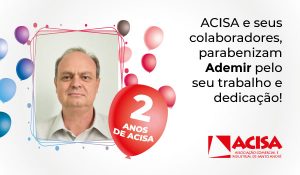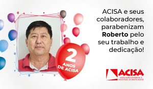 Temos a honra de contar com a sua dedicação e comprometimento durante esses 2 anos. Receba os sinceros agradecimentos de todos da equipe ACISA!