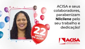 Temos a honra de contar com a sua dedicação e comprometimento durante esses 22 anos. Receba os sinceros agradecimentos de todos da equipe ACISA!