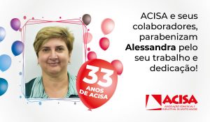 Temos a honra de contar com a sua dedicação e comprometimento durante esses 33 anos. Receba os sinceros agradecimentos de todos da equipe ACISA!